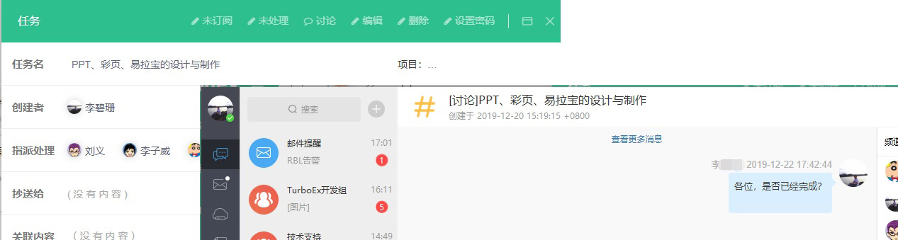 - 與其他的辦公軟件(審批流程、項目管理、企業云盤、知識庫等)集成,工作時隨時展開團隊討論。