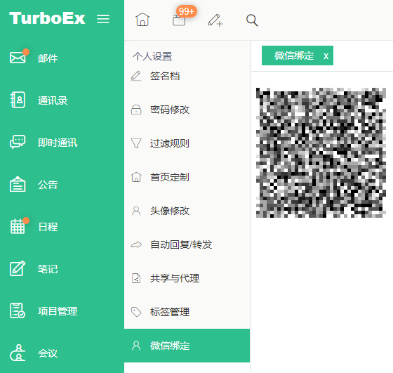 其他用戶則通過掃碼操作,即可馬上將自己的企業郵箱綁定微信賬號,在微信中使用TurboEx企業郵箱的各項功能。