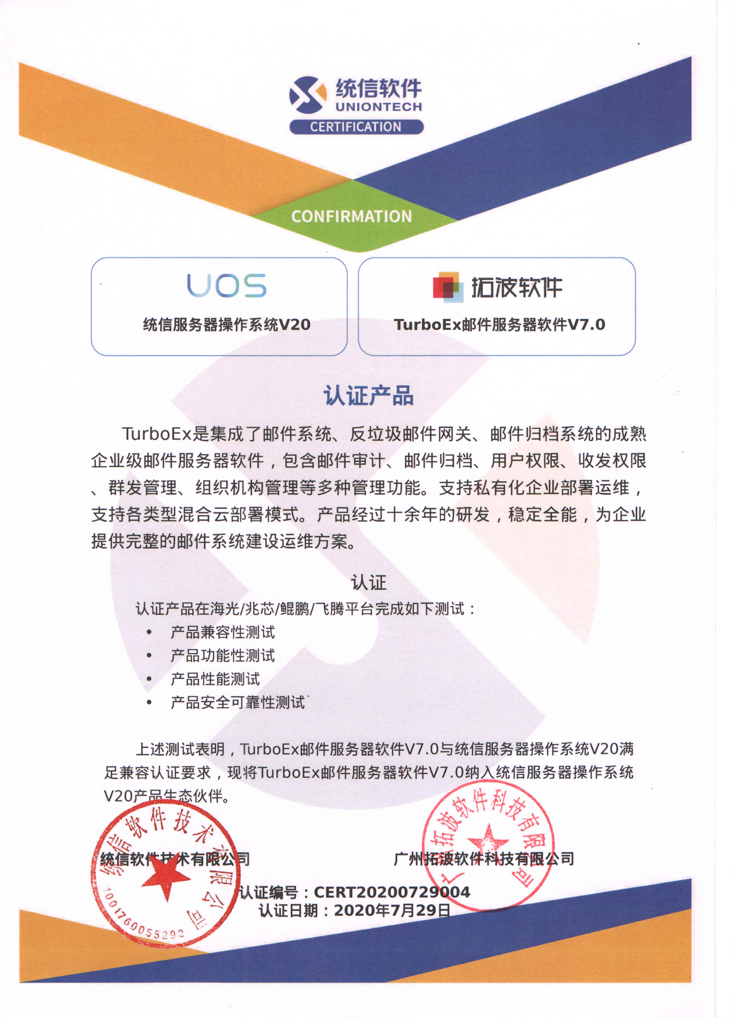TurboEx郵件系統(tǒng)完成與統(tǒng)信UOS操作系統(tǒng)的兼容互認(rèn)證