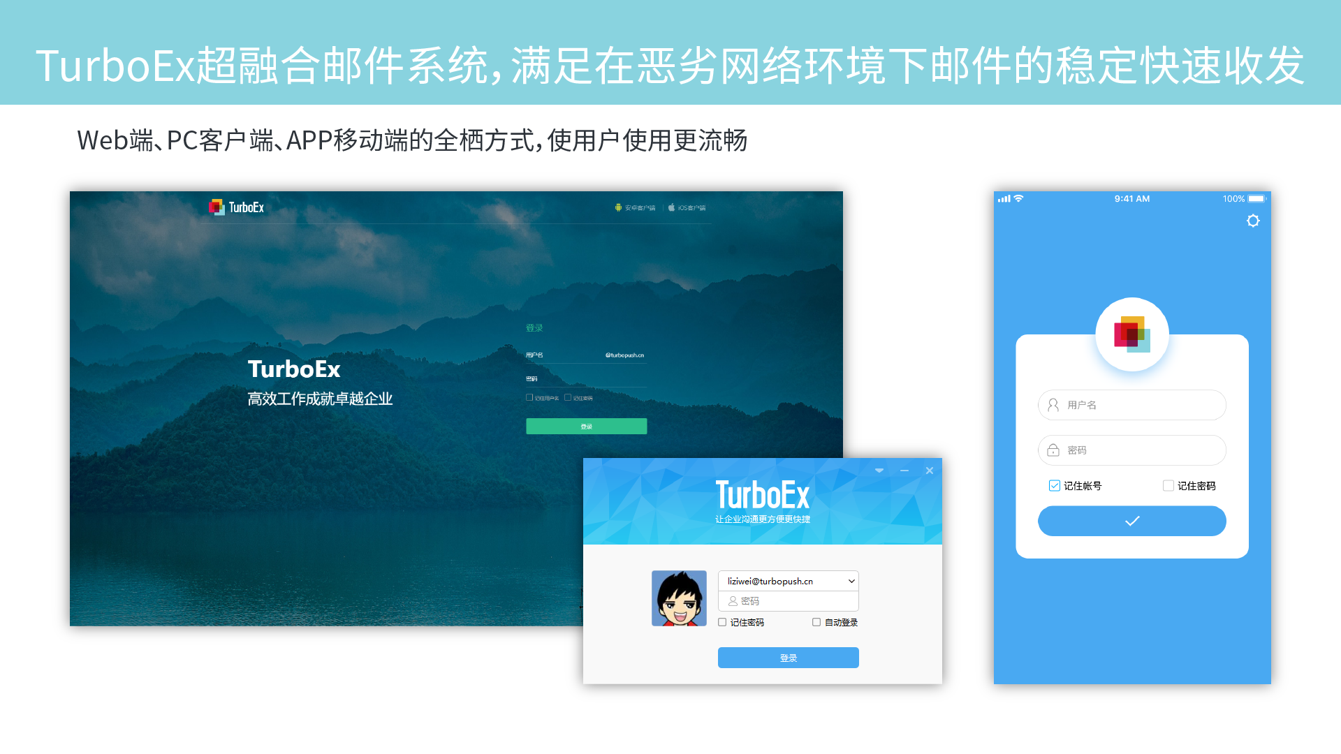 2,TurboEx超融合郵件系統提供自研的郵件客戶端軟件并提供開發服務,通過去除郵件客戶端的更多功能,只保留郵件收發和通訊錄功能,簡化與郵件服務器端的通訊內容,減少帶寬耗用。