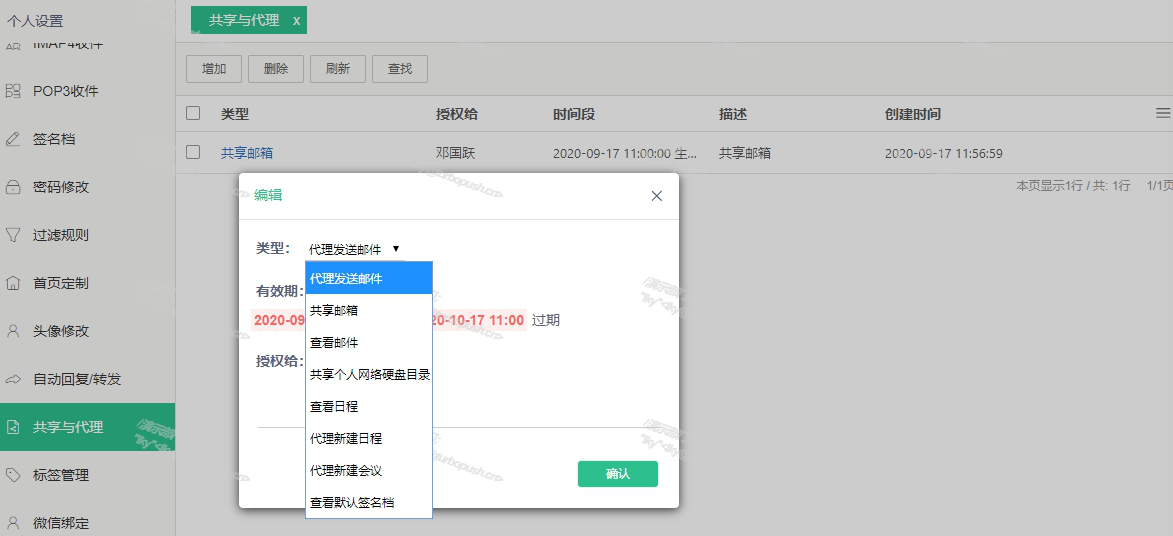 2)可授權其他同事替自己代理發送郵件、代理新建日程、代理新建會議。