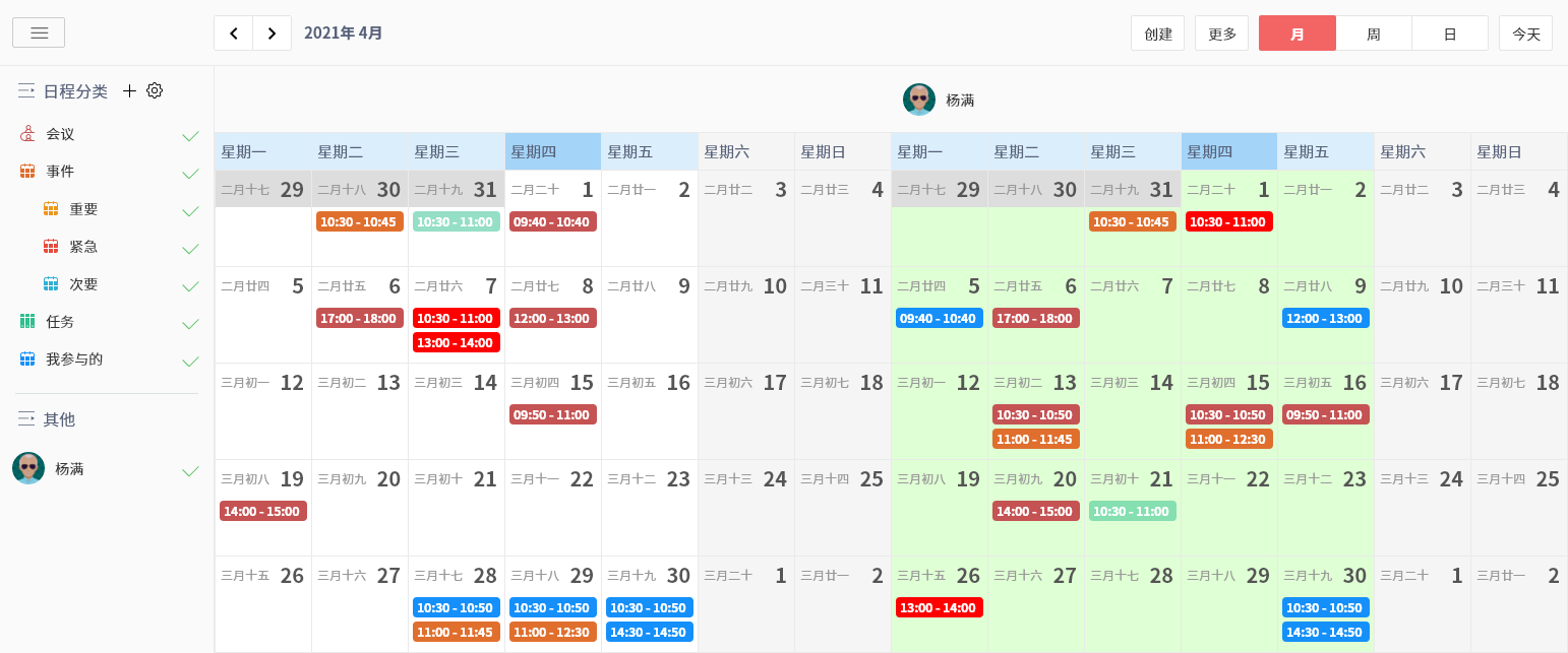 2)可授權他人共享彼此的日程內容,支持多人并列顯示日程進行對比。