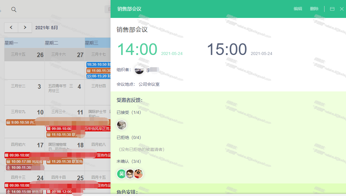 7) 會議預約成功后直接同步到成員的工作日程中。