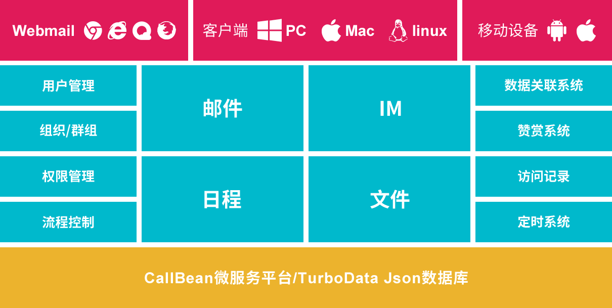 全球首屈一指的TurboEx超融合企業(yè)郵件系統(tǒng),為企業(yè)提供應(yīng)用級(jí)郵件系統(tǒng)解決方案,是中國獨(dú)家融合郵件系統(tǒng)、IM即時(shí)通訊、文件共享、日程協(xié)同、在線會(huì)議、工作流審批、項(xiàng)目任務(wù)管理等辦公軟件的超融合郵件協(xié)同辦公平臺(tái),提供輕代碼微服務(wù)二次開發(fā)平臺(tái),提供Web、PC客戶端、移動(dòng)辦公APP等客戶端,支持私有化企業(yè)部署運(yùn)維,支持各類型混合云部署模式,滿足企業(yè)日常辦公協(xié)作的所有需求。