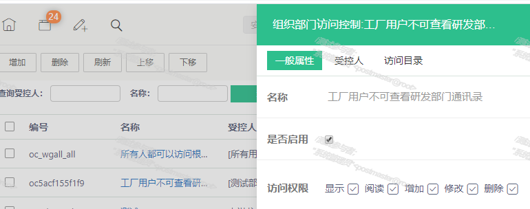 對特定用戶、群組或部門,授權每個功能的獨立權限,例如不能下載附件、不能查看通訊錄等。