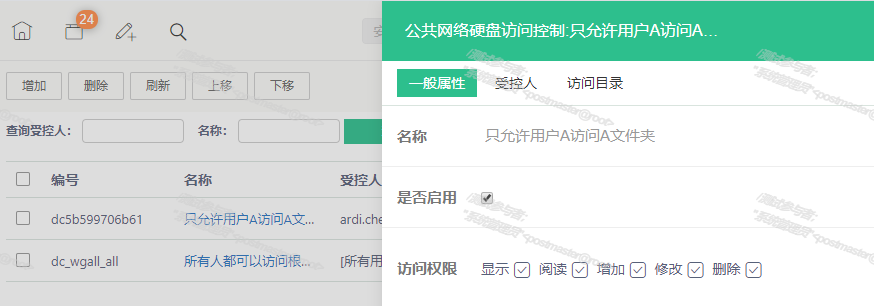 可配置受控網絡,用戶進行的操作類別,操作后系統自動發送通知給指定人員。