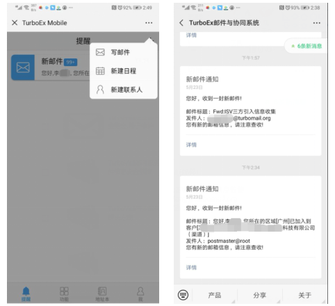 ④這樣就馬上開始在飛書中接收各類來自TurboEx超融合郵件系統平臺的消息,隨時收發郵件了!