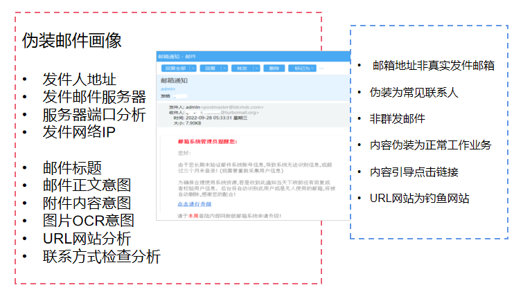 精心設計的定向釣魚郵件能輕松躲開傳統反垃圾網關的屏蔽,而且郵件的正文高度模擬用戶的正常辦公郵件內容,誘導用戶點擊惡意的附件、鏈接或提交表單,從而達到收集用戶數據、植入木馬或病毒的目的,已成為企業郵件服務器的最大安全隱患。