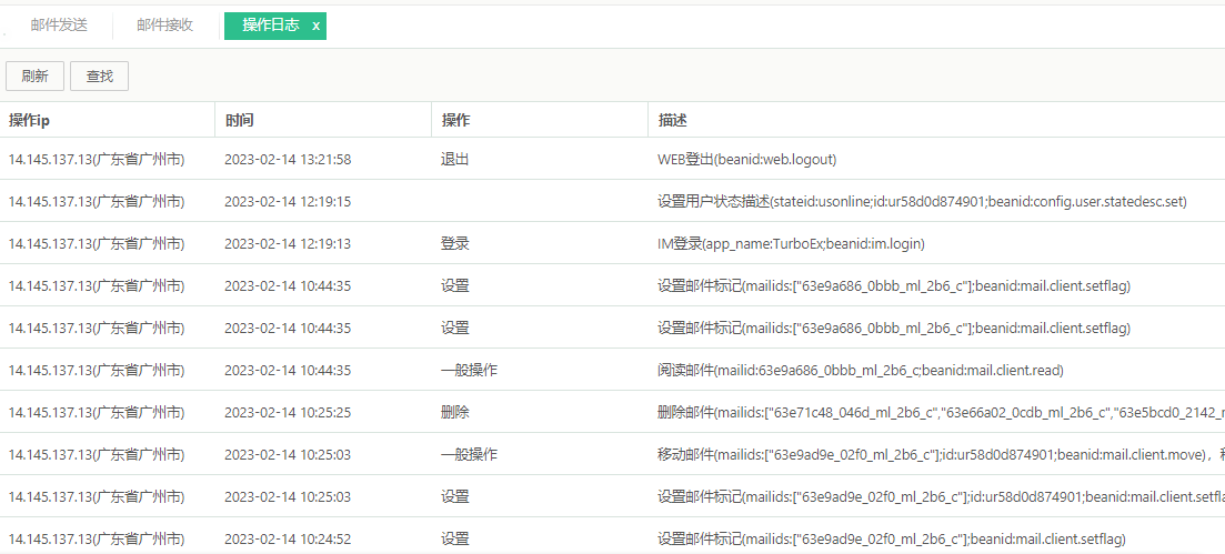 在TurboEx的“用戶自助查詢工具”,每個郵箱用戶都可以快捷的查詢個人郵箱里的全部的郵件數據和操作記錄,并可以解鎖放行被系統誤判為垃圾郵件的郵件,緊急恢復自己誤刪的郵件,查看賬戶的操作日志防止被盜用等等。