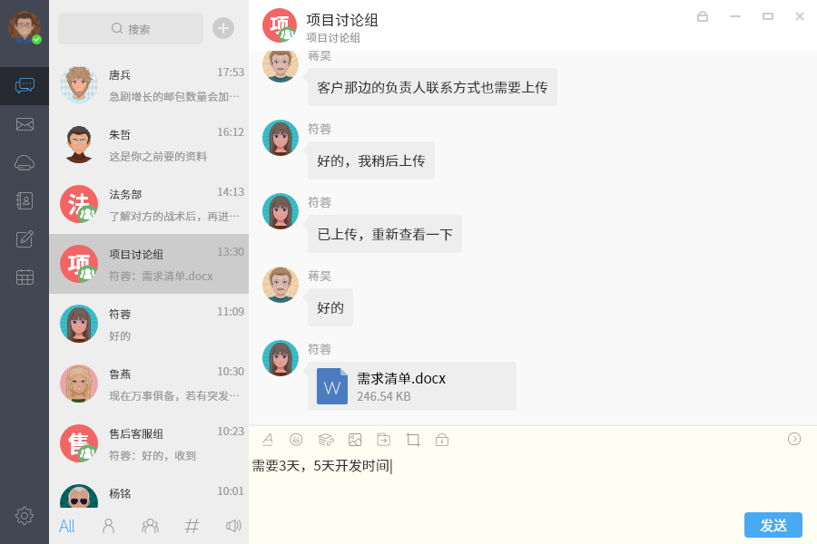 TurboEx郵件客戶端也兼為IM聊天客戶端,提供實時溝通、在線會議、群組討論、文件收發、遠程協助、加密聊天等功能。