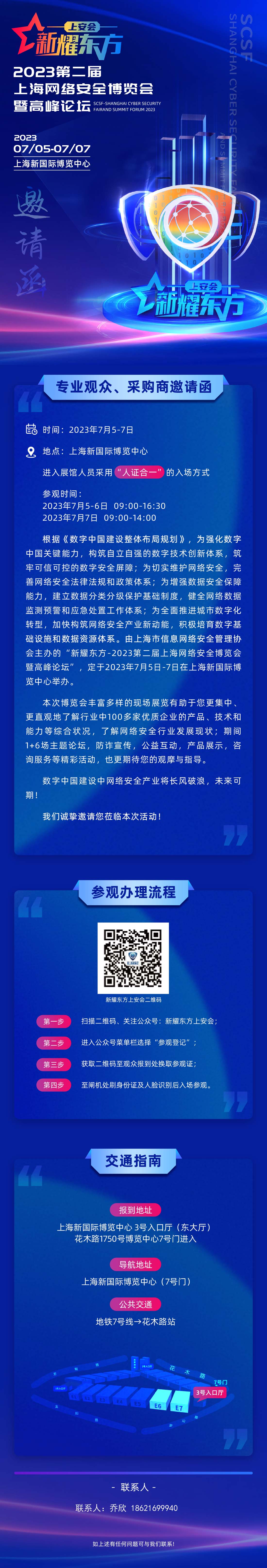 新耀東方-2023上海網(wǎng)絡(luò)安全博覽會暨高峰論壇:由上海市信息網(wǎng)絡(luò)安全管理協(xié)會、國家計(jì)算機(jī)網(wǎng)絡(luò)應(yīng)急技術(shù)處理協(xié)調(diào)中心上海分中心(SHCERT)、(ISC)2上海分會聯(lián)合主辦,上??茖W(xué)院、上海汽車集團(tuán)股份有限公司、上海市衛(wèi)生健康統(tǒng)計(jì)中心、上海市聯(lián)合征信有限公司、上海市商用密碼行業(yè)協(xié)會協(xié)辦,將在2023年7月5日-7日在上海新國際博覽中心隆重舉行。大會堪稱網(wǎng)絡(luò)安全年度盛宴,超過12000平方米的展覽面積,“大場地+安全廠商,參展企業(yè)陣容豪華”,讓觀眾在現(xiàn)場就可以直接體驗(yàn)廠商的安全產(chǎn)品,觀展的同時(shí)還可以與安全大咖零距離交流。