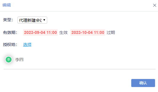 適用于領導和高管,授權您的助理或者秘書,代理您的會議管理功能,幫您發起會議邀約,或者修改會議。