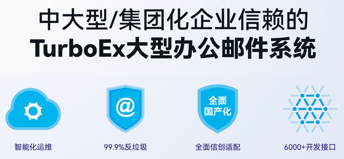 目前,TurboEx大型辦公郵件系統以強大的郵件應用功能能力、智能化輕松運維后臺技術、6000+快速開發接口、99.9%安全反網絡垃圾性能,為眾多大型企業集團、金融單位、政務單位提供專業的辦公應用級郵件系統解決方案,協助用戶建設高效協作企業郵箱平臺,深受市場認可。