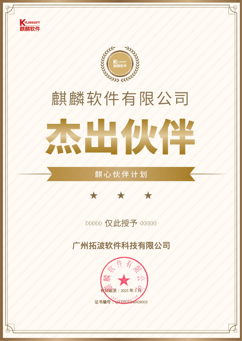 近日,拓波軟件作為辦公應用級電子郵件系統的重要國產研發商,獲得麒麟軟件頒發的麒心伙伴計劃“杰出伙伴”稱號。自2020年始,拓波軟件的兩款產品——TurboEx郵件服務器軟件、TurboEx郵件客戶端軟件就分別與銀河麒麟高級服務器操作系統、銀河麒麟桌面操作系統完成兼容認證,并且在客戶中成功進行廣泛應用,實現了從服務器端到用戶端的信創電子郵件應用全棧解決方案。