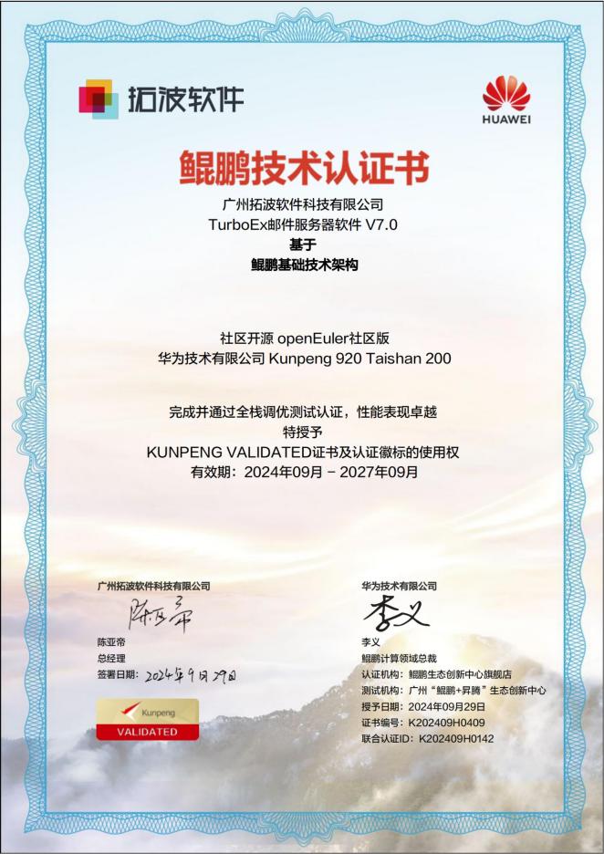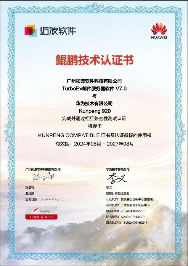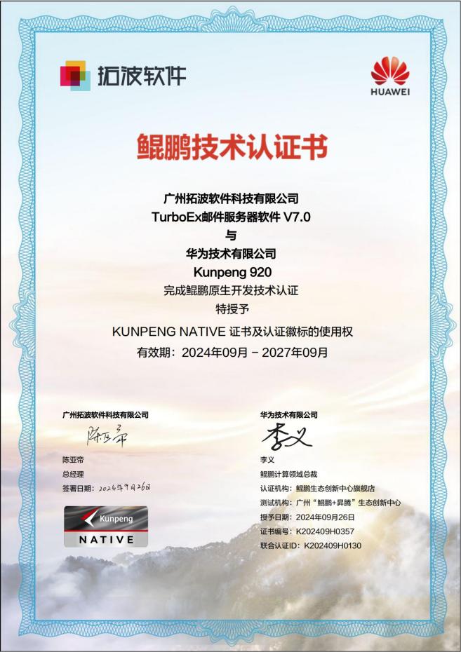 日前,經(jīng)過鯤鵬生態(tài)創(chuàng)新中心嚴格測試與篩選,拓波軟件旗下的TurboEx辦公應(yīng)用級郵件系統(tǒng)解決方案,成功通過了華為鯤鵬三大認證:Kunpeng 920兼容性測試認證(Kunpeng Compatible)、Kunpeng 920鯤鵬原生開發(fā)技術(shù)認證(Kunpeng Native)、基于鯤鵬基礎(chǔ)技術(shù)架構(gòu)的全棧調(diào)優(yōu)測試認證(Kunpeng Validated),標志著TurboEx郵件系統(tǒng)正式成為華為鯤鵬原生開發(fā)級應(yīng)用合作伙伴,為廣大客戶提供更優(yōu)質(zhì)的基于華為鯤鵬原生開發(fā)架構(gòu)下的國產(chǎn)電子郵件系統(tǒng)解決方案。