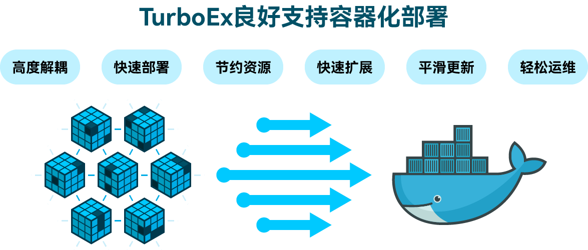 采用CallBean微服務作為底層開發技術的TurboEx郵件系統,每項功能都是一個獨立的微服務單位,職責明確、邊界清晰,自然和便捷地將不同的功能獨立封裝進容器,實現高度解耦。通過在容器環境中精準配置資源,避免資源浪費或不足,通過增加容器數量快速擴展資源不足的應用。通過簡單幾步的容器編排工具操作就可以快速部署應用到容器,實現快速的更新、升級與運維。