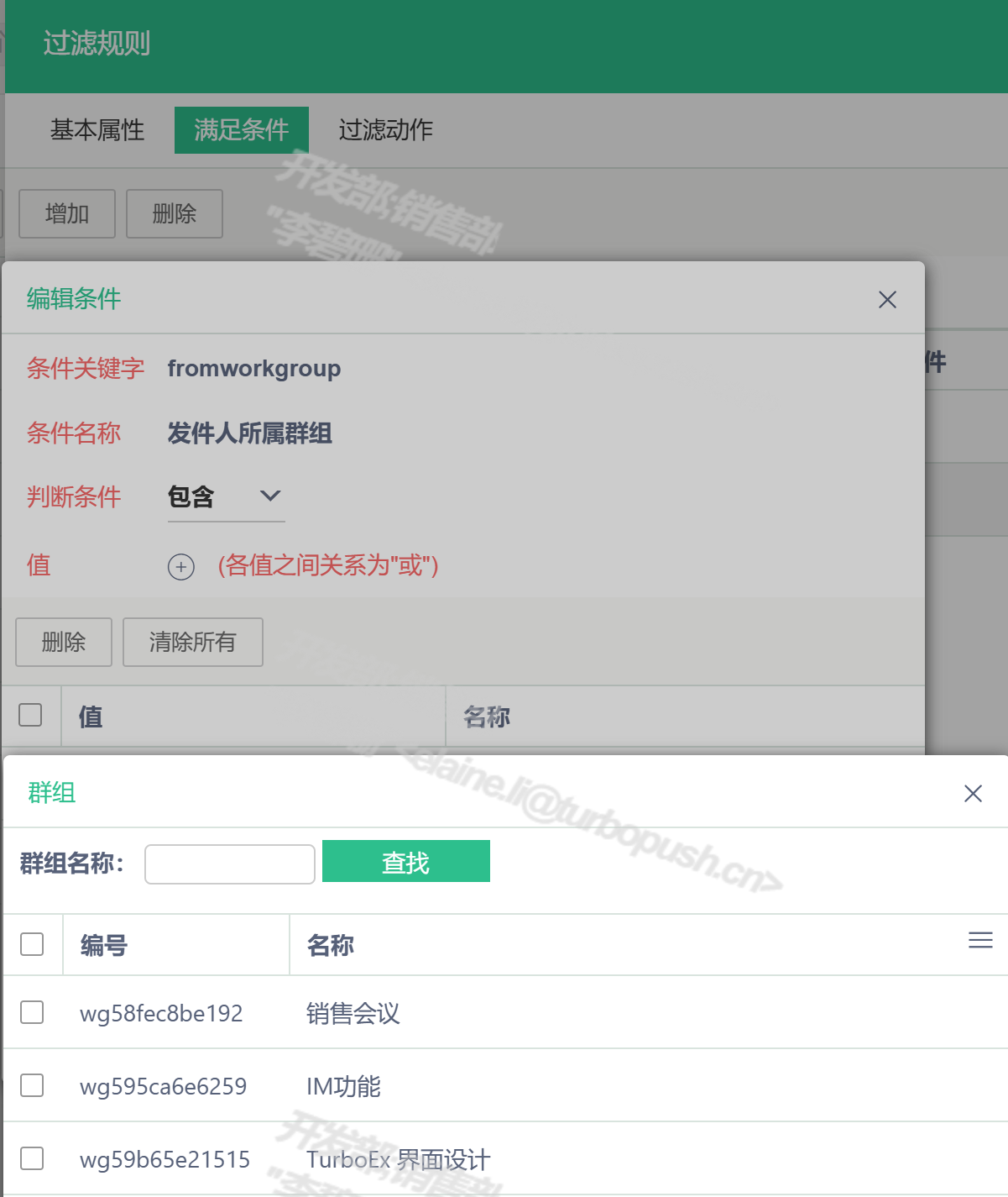 2. 增加了針對郵件群組的過濾器,郵件群組可收集系統內或系統外的郵箱地址,更加靈活了管理功能。