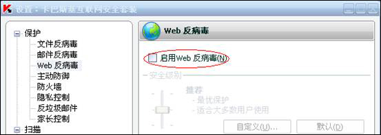- 如果您在訪問webmail發(fā)現(xiàn)Tomcat_Web進程占用很高的CPU,請關(guān)閉卡巴的web反病毒功能。