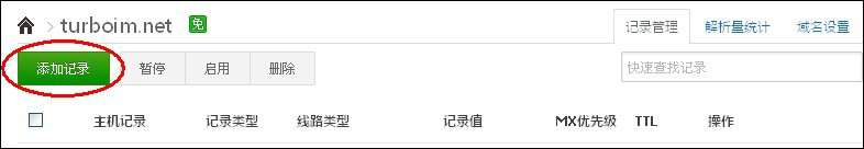 - 以下通過www.dnspod.cn這個常見的域名解析網站,郵件域名turboim.net(即郵箱地址xx@turboim.net所用的域名)為例,介紹域名解析的操作過程