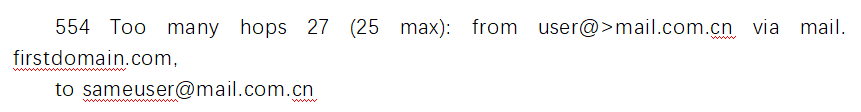 - 說明你蹦跳太多了,這是因?yàn)槟惆l(fā)出的信抵達(dá)對方的 A 郵箱后,由于 A 郵箱設(shè)置了自動轉(zhuǎn)發(fā)至 B 郵箱,而 B 郵箱又設(shè)置了自動轉(zhuǎn)發(fā)回 A 郵箱