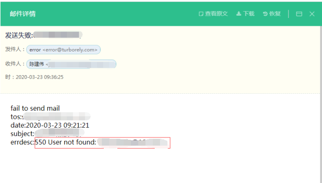 - 退信原因:連接到接收方郵件服務(wù)器,但接收地址不存在。