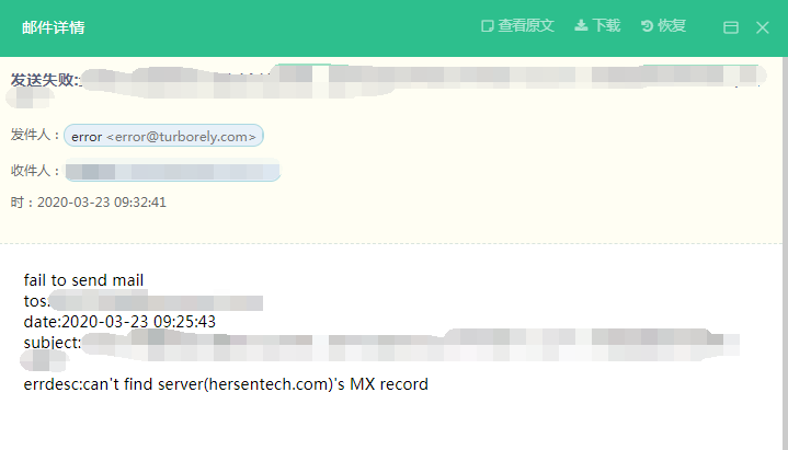 - 退信原因:無法建立 SMTP 連接或者對方服務(wù)器忙。