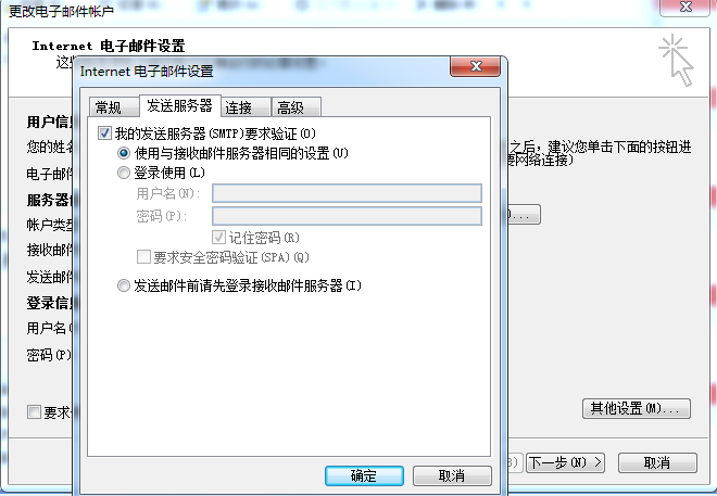 - 請檢查outlook Express、outlook及foxmail等客戶端工具是否設(shè)置“發(fā)送服務(wù)器需要身份驗(yàn)證”。