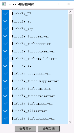 - 服務啟動順序:TuboEx_DB ->TurboEx_sq->turboaop->TurboEx_turboserver->其它turboEx和cbserver的程序)