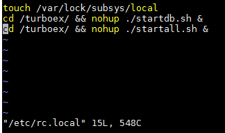 - [root@localhost turboex]# vim /etc/rc.d/rc/local