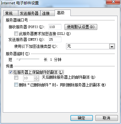 - 點擊“高級”選中“,勾選“在服務器上保留郵件副本”旁邊的復選框然后單擊“確定”,返回。