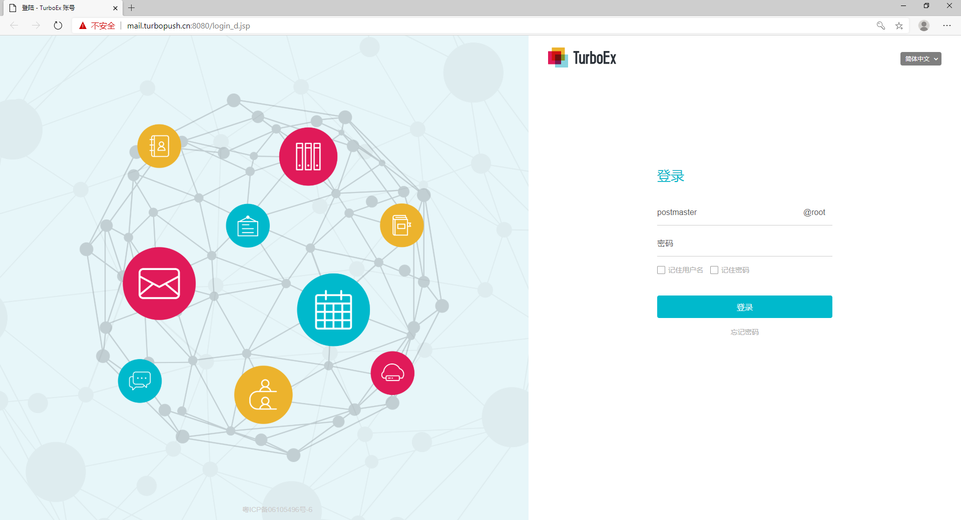 - 打開瀏覽器,訪問:http://服務(wù)器IP:8080 進(jìn)入系統(tǒng)管理頁面,用戶名postmaster@root,默認(rèn)密碼為空,登錄后可添加域和用戶等操作。(普通用戶也訪問此頁面進(jìn)入)